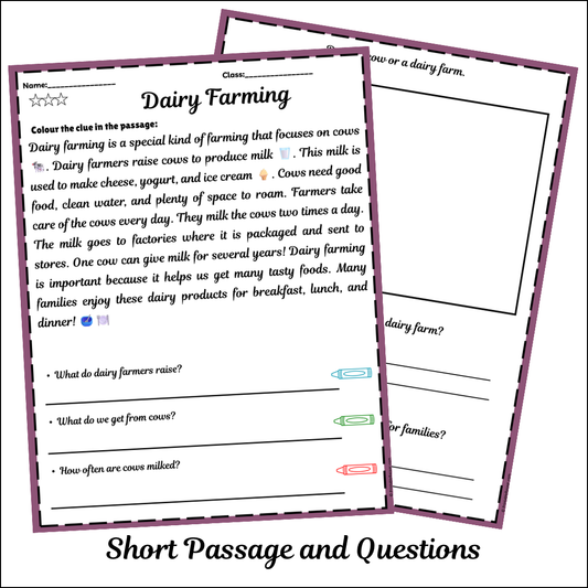 Dairy Farming | Short Reading Comprehension Creative Worksheet
