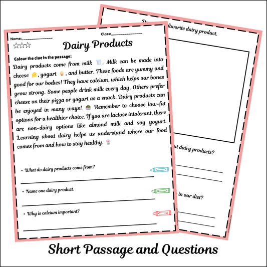 Dairy Products | Short Reading Comprehension Creative Worksheet