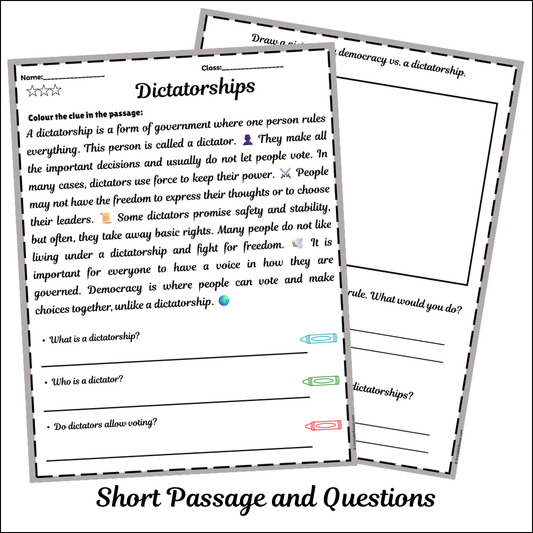 Dictatorships | Short Reading Comprehension Creative Worksheet