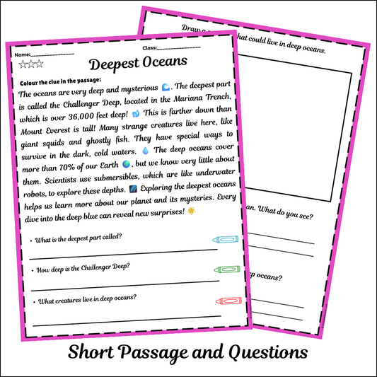 Deepest Oceans | Short Reading Comprehension Creative Worksheet