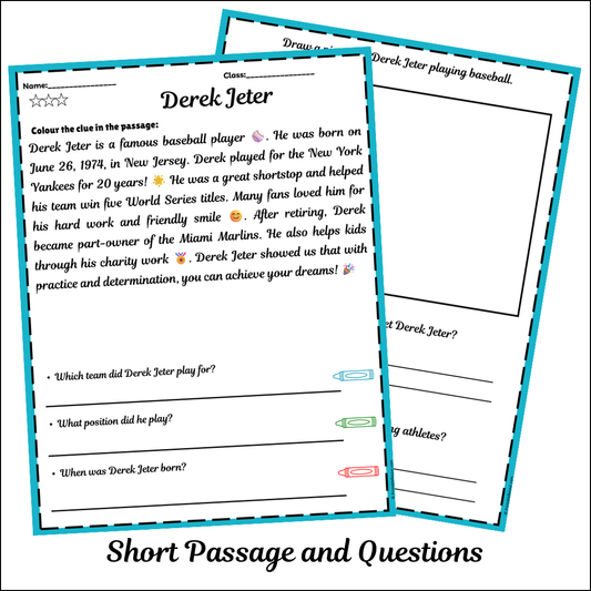 Derek Jeter | Short Reading Comprehension Creative Worksheet