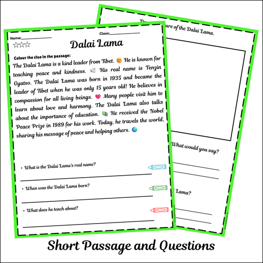 Dalai Lama | Short Reading Comprehension Creative Worksheet