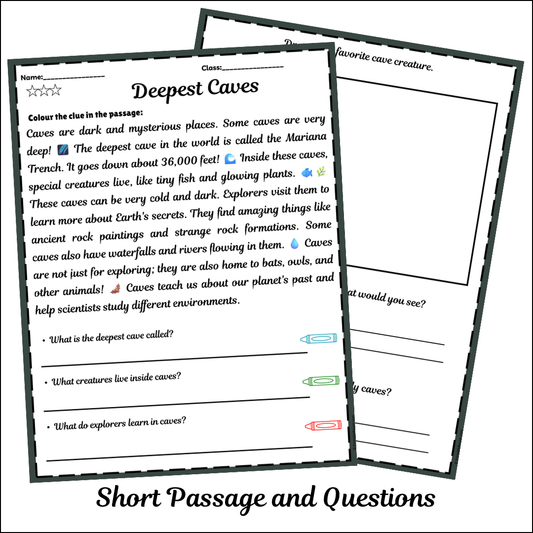 Deepest Caves | Short Reading Comprehension Creative Worksheet