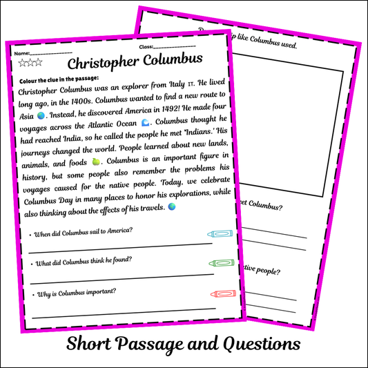 Christopher Columbus | Short Reading Comprehension Creative Worksheet