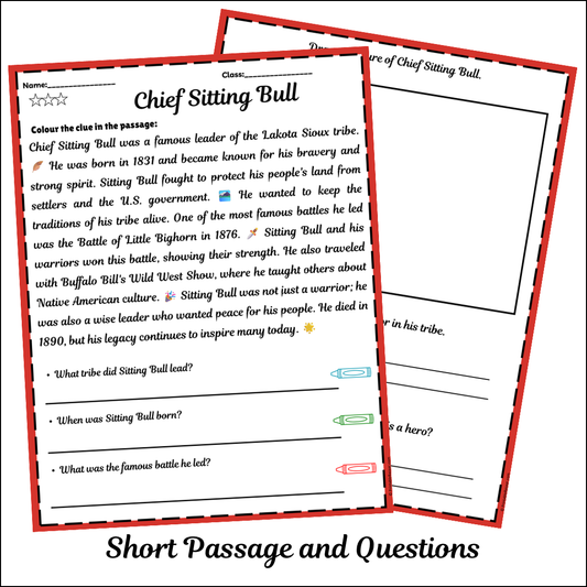 Chief Sitting Bull | Short Reading Comprehension Creative Worksheet