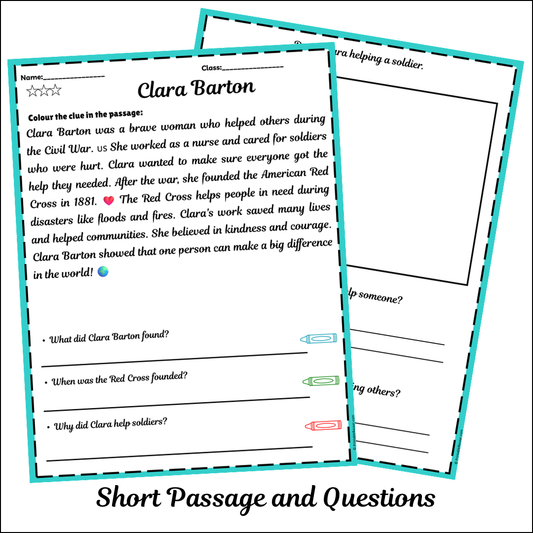 Clara Barton | Short Reading Comprehension Creative Worksheet