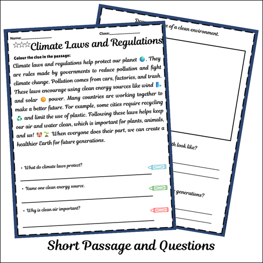 Climate Laws and Regulations | Short Reading Comprehension Creative Worksheet