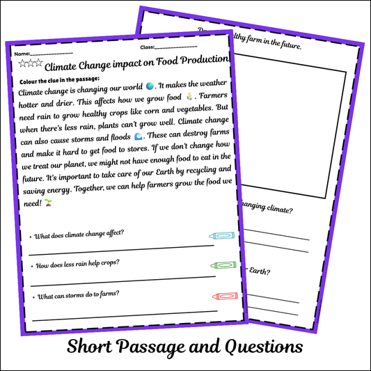 Climate Change impact on Food Production | Short Reading Comprehension Creative Worksheet