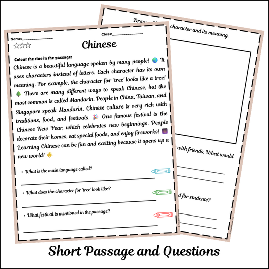 Chinese New Year | Short Reading Comprehension Creative Worksheet