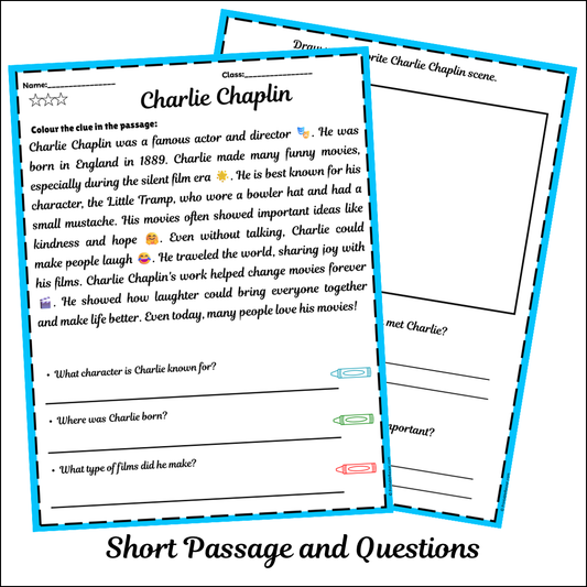 Charlie Chaplin | Short Reading Comprehension Creative Worksheet