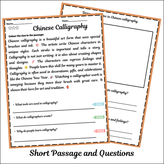 Chinese Calligraphy | Short Reading Comprehension Creative Worksheet