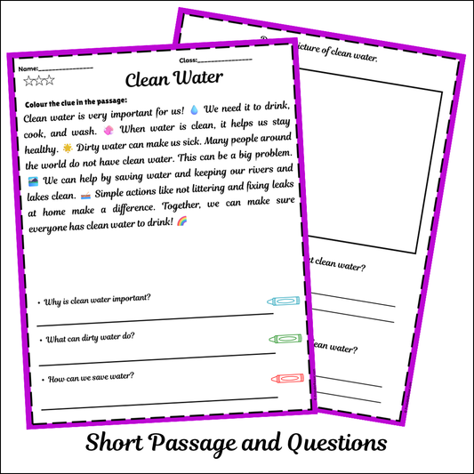 Clean Water | Short Reading Comprehension Creative Worksheet