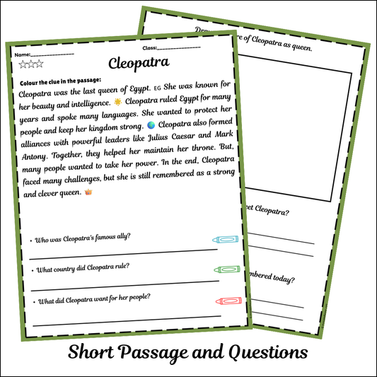 Cleopatra | Short Reading Comprehension Creative Worksheet