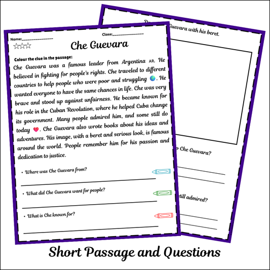 Che Guevara | Short Reading Comprehension Creative Worksheet