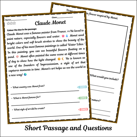 Claude Monet | Short Reading Comprehension Creative Worksheet