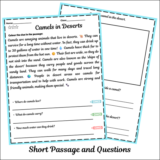 Camels in Deserts | Short Reading Comprehension Creative Worksheet