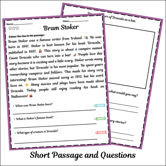 Bram Stoker | Short Reading Comprehension Creative Worksheet