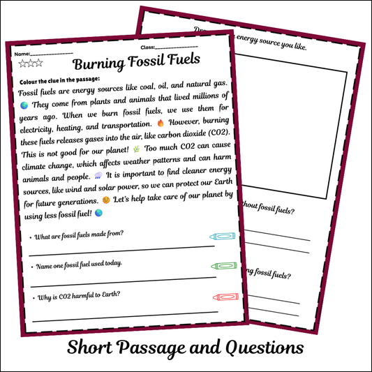 Burning Fossil Fuels | Short Reading Comprehension Creative Worksheet
