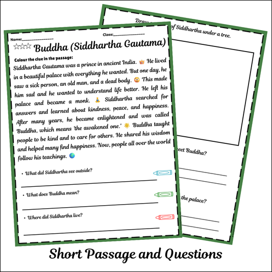 Buddha (Siddhartha Gautama) | Short Reading Comprehension Creative Worksheet