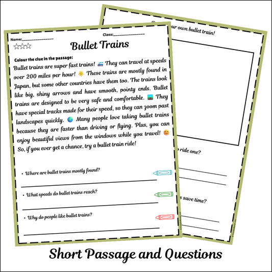 Bullet Trains | Short Reading Comprehension Creative Worksheet