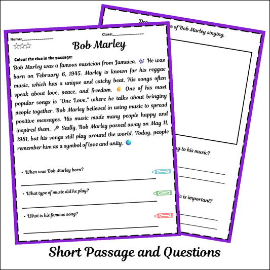 Bob Marley | Short Reading Comprehension Creative Worksheet
