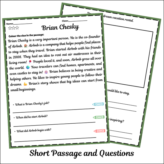 Brian Chesky | Short Reading Comprehension Creative Worksheet
