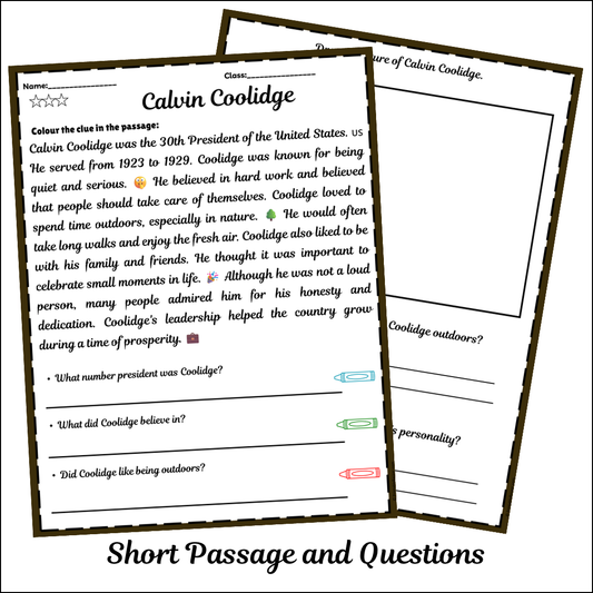 Calvin Coolidge | Short Reading Comprehension Creative Worksheet