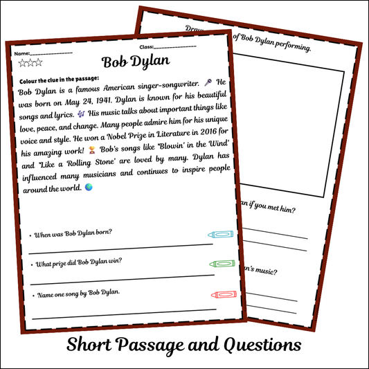 Bob Dylan | Short Reading Comprehension Creative Worksheet