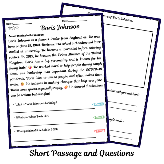 Boris Johnson | Short Reading Comprehension Creative Worksheet