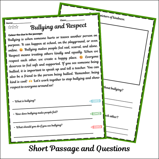 Bullying and Respect | Short Reading Comprehension Creative Worksheet