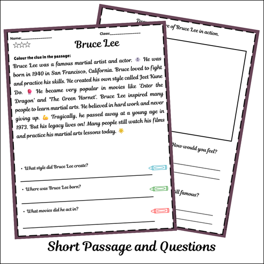 Bruce Lee | Short Reading Comprehension Creative Worksheet