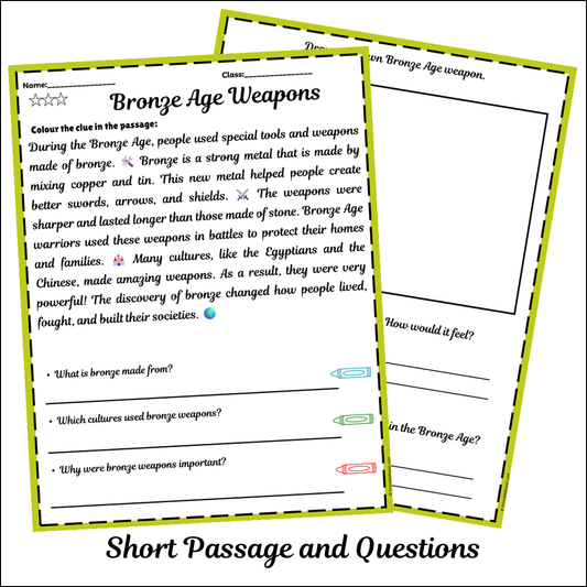 Bronze Age Weapons | Short Reading Comprehension Creative Worksheet
