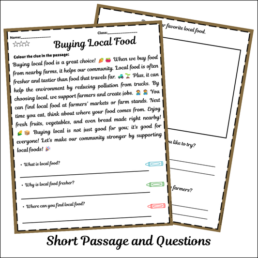 Buying Local Food | Short Reading Comprehension Creative Worksheet