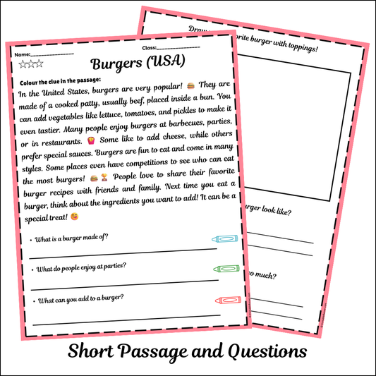 Burgers (USA) | Short Reading Comprehension Creative Worksheet