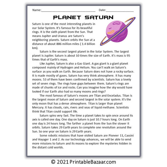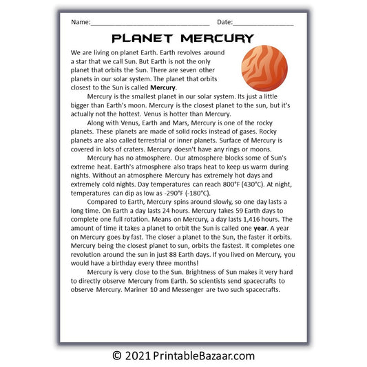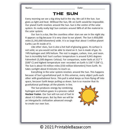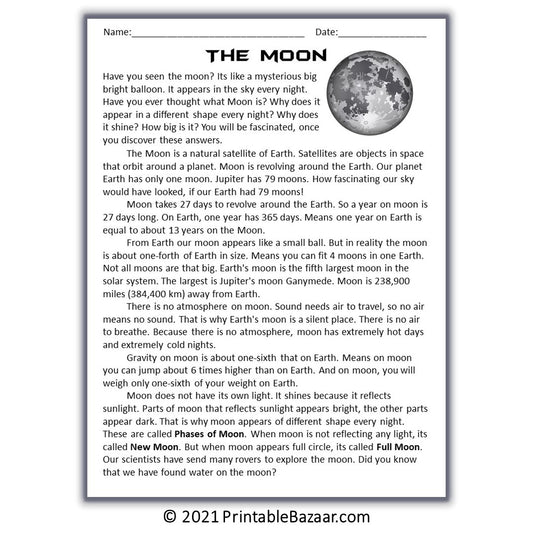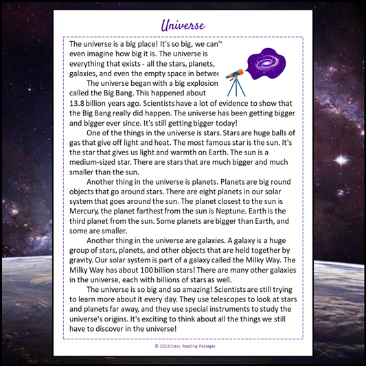 Universe Reading Comprehension Passage and Questions | Printable PDF