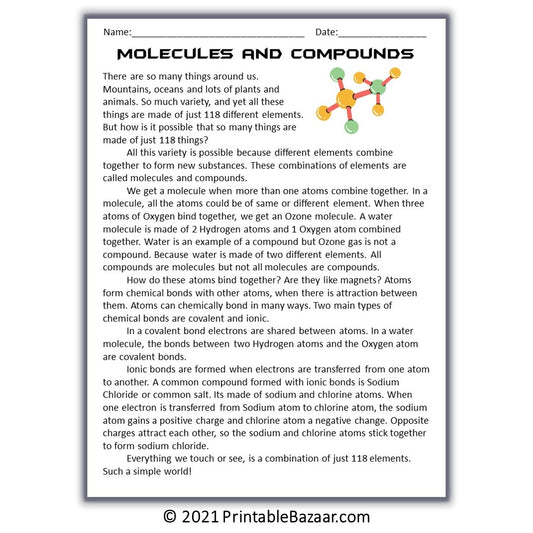 Molecules and Compounds Reading Comprehension Passage and Questions