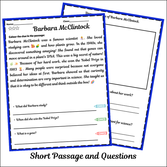 Barbara McClintock | Short Reading Comprehension Creative Worksheet