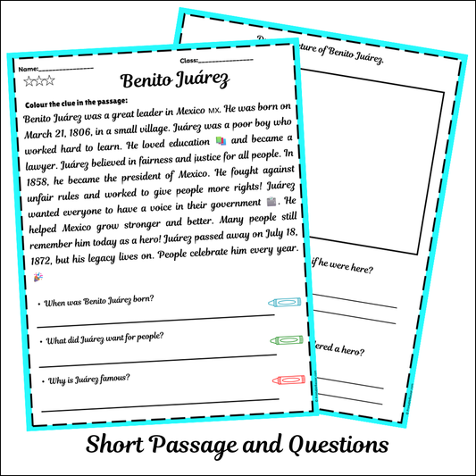 Benito Juárez | Short Reading Comprehension Creative Worksheet