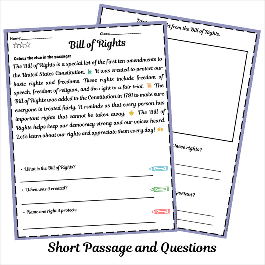 Bill of Rights | Short Reading Comprehension Creative Worksheet