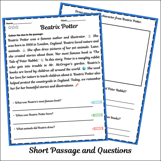 Beatrix Potter | Short Reading Comprehension Creative Worksheet