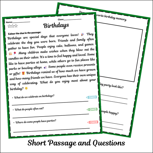 Birthdays | Short Reading Comprehension Creative Worksheet