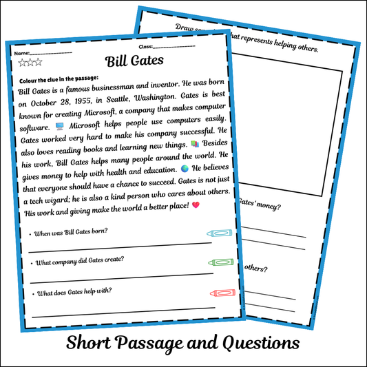 Bill Gates | Short Reading Comprehension Creative Worksheet