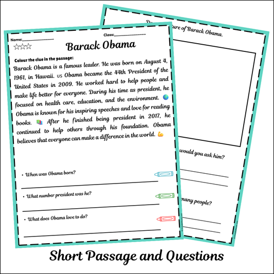 Barack Obama | Short Reading Comprehension Creative Worksheet