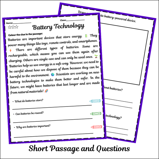 Battery Technology | Short Reading Comprehension Creative Worksheet