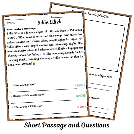 Billie Eilish | Short Reading Comprehension Creative Worksheet