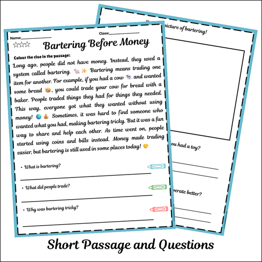 Bartering Before Money | Short Reading Comprehension Creative Worksheet