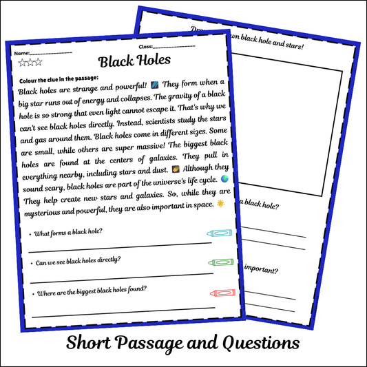 Black Holes | Short Reading Comprehension Creative Worksheet