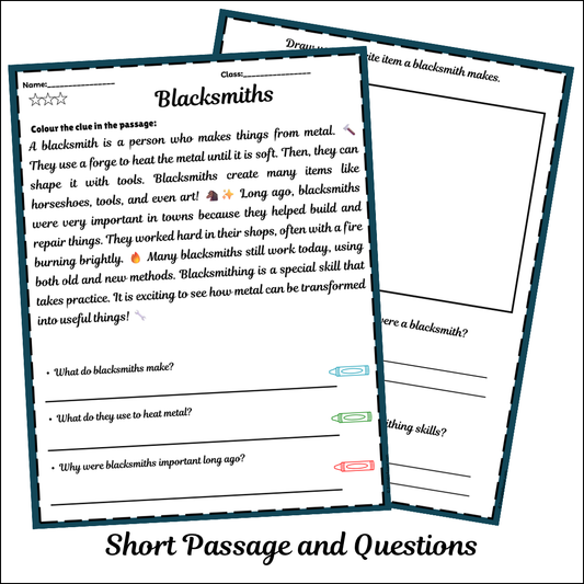 Blacksmiths | Short Reading Comprehension Creative Worksheet