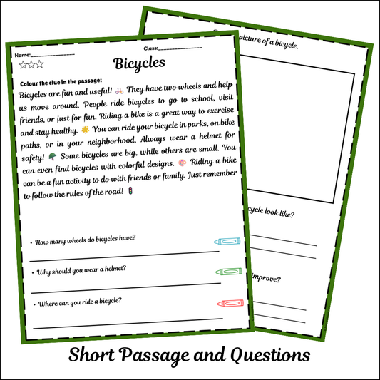 Bicycles | Short Reading Comprehension Creative Worksheet