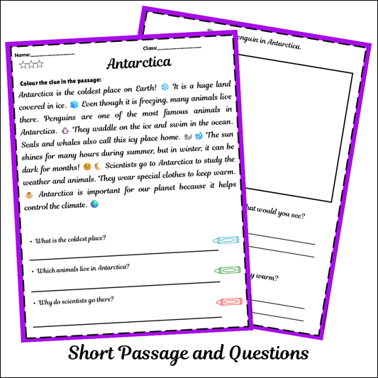 Antarctica | Short Reading Comprehension Creative Worksheet
